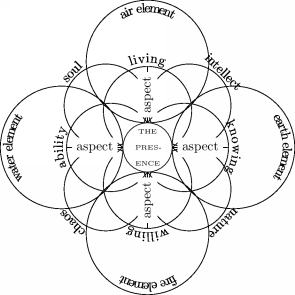 Figure 4.9: The Quadratic Divine Origins. Ibn al-Arabi showed that everything in the world is based on some divine realities, and because there are four fundamental divine Names or Attributes: Living, Ability, Knowing, and Willing; the emergent worlds are always based on four fundamental facts, such as the four classical elements of Nature.
